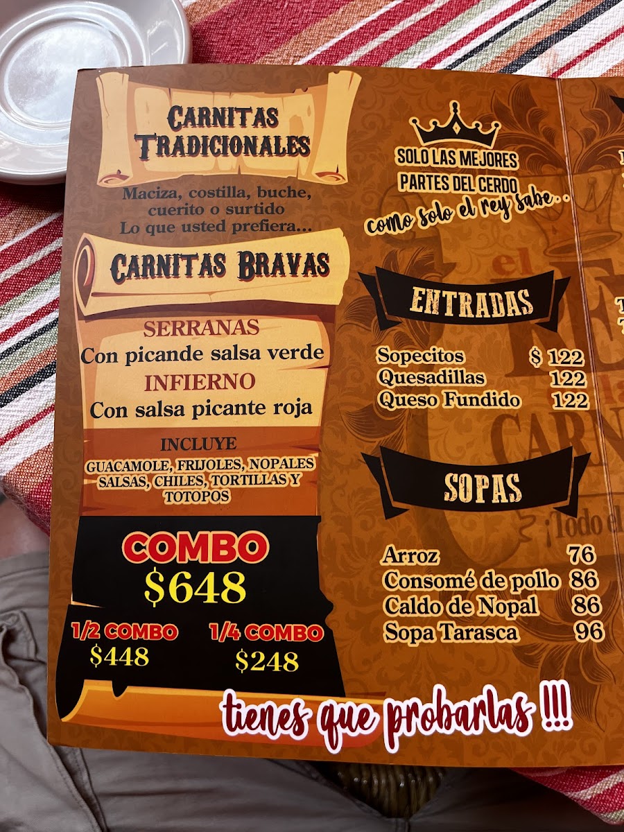 Welcome to El Rey de las Carnitas, a hidden gem nestled in the charming Plaza Principal of Michoacán, Mexico. This delightful eatery specializes in traditional Michoacan carnitas, offering a taste of authentic local flavors in a picturesque courtyard setting, dating back to 1746.